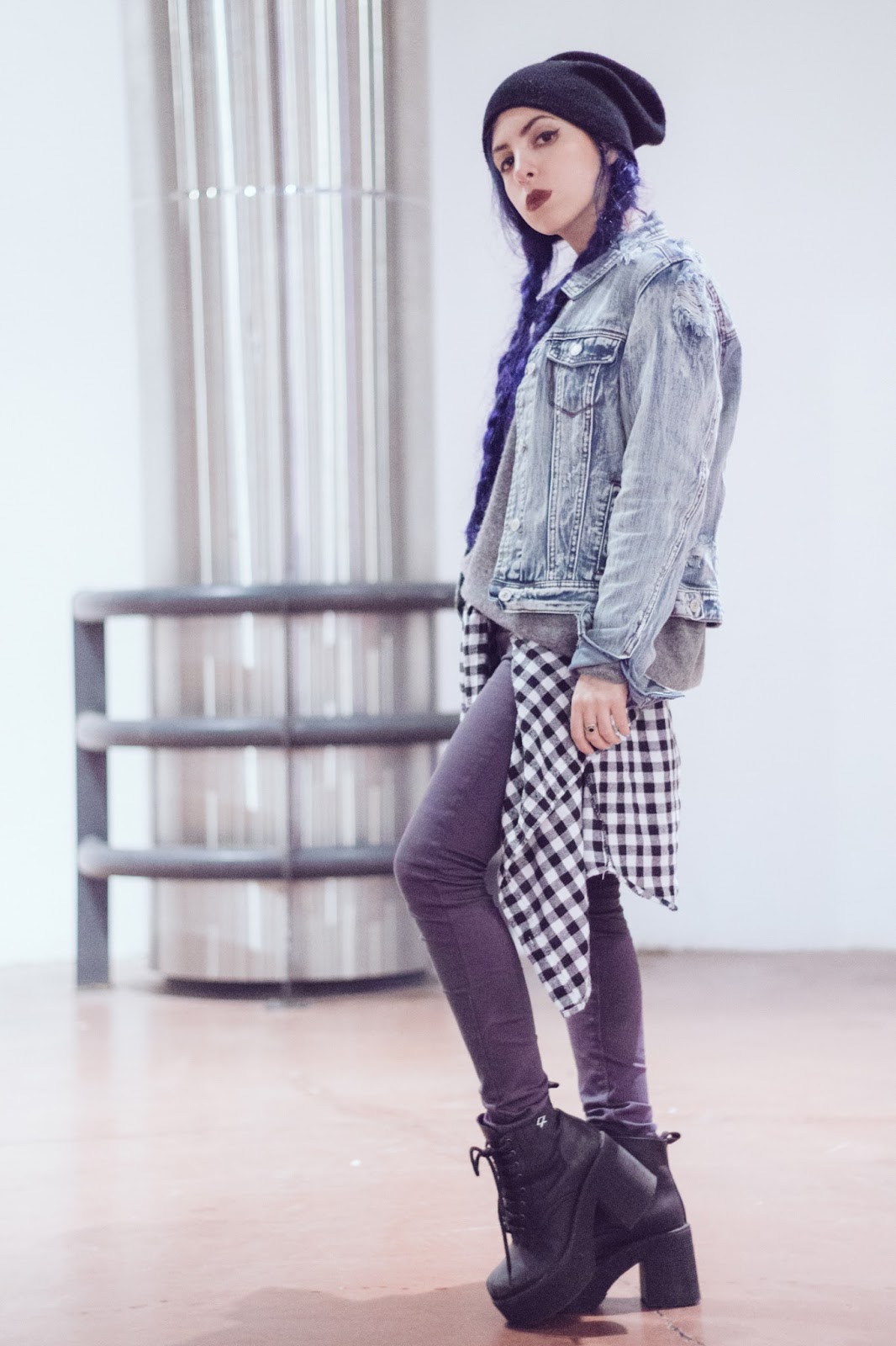 Yesterday i woke up knowing i had a long day ahead of me but clueless about what i was wearing, and that might seem like the most meaningless problem (and it is) but during fashion week it gets a bit more “important”. I had one of those ” i hate everything in my closet” kind of moments. Nothing was working for me, it was raining and cold and none of my clothes was right. So i went back to my comfort zone, something that I’d wear on a daily basis that was both cool and comfortable. My -theme- for these year is colorless outfits cause i’m just going to a stage, really. So i picked up a pair of grey skinnies, a new distressed denim jacket that i love and my dad’s jumper cause i realized i do not own a gray jumper. I finished the look with one of my fave flannels tied around my waist, chunky boots and bold make up. I loved the result, even though it’s something that i would wear on a normal day, it was one hundred percent me and in the end, that’s what’s important.
