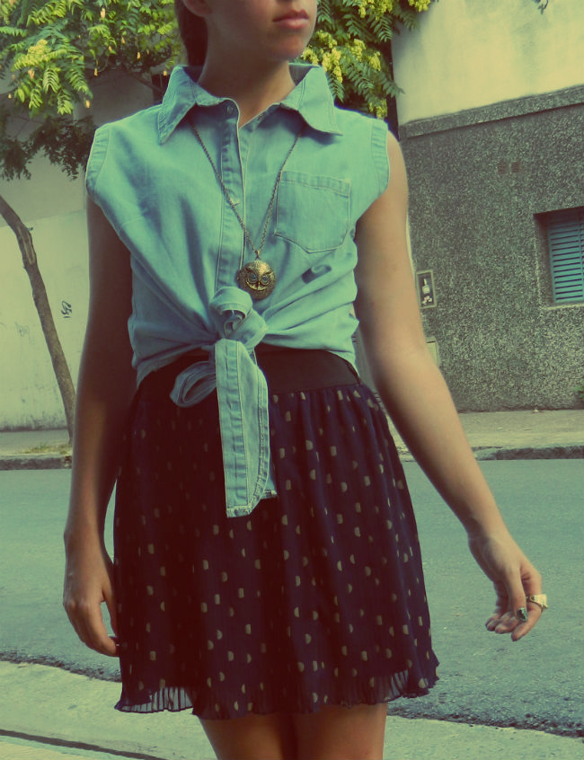 divino el outfit Lessie, el collar de la lechuza es divino <3La falda es muy linda, en especial porque es la típica que se puede usar en el día como en la noche.xoxo