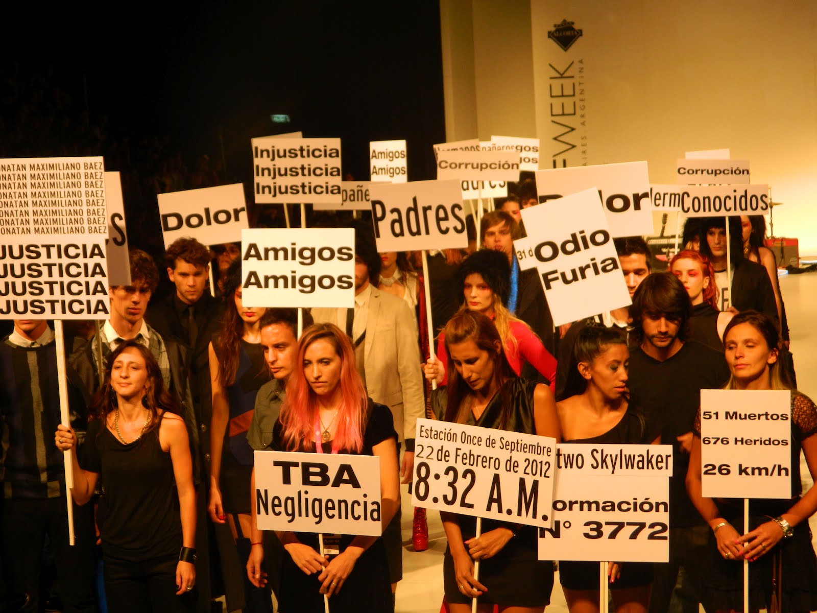 la marca ecológica presento una colección con negros y metalizados, colores destacados como azul y rojo , transparencias y detalles de cuellos removibles. El desfile contó con una banda en vivo y al final todos los modelos y las diseñadoras salieron a la pasarela a repudiar el siniestro de once, donde uno de los colaboradores de la marca falleció.