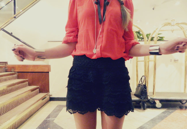 qué lindo look! hace poco me probé unos shorts caaasi iguales en Wet Seal, pero a diferencia de los tuyos los que vi eran color cremita. pero los preferiría en negro! jajamuy bella para el evento!Besotes,Jannuhttp://FashionistArg.blogspot.com