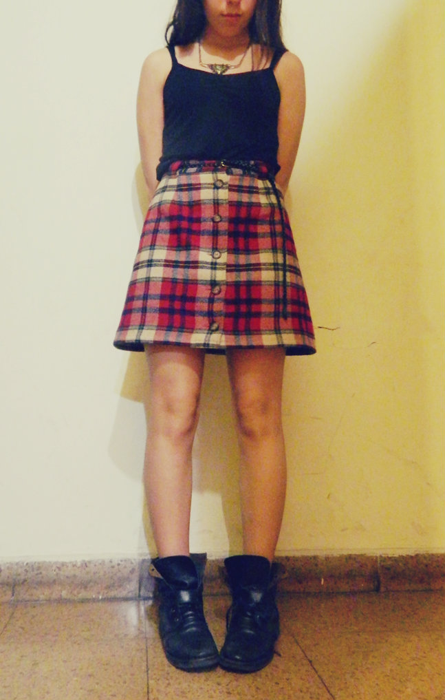 From a simple tank top and high waisted skirt with combat boots,