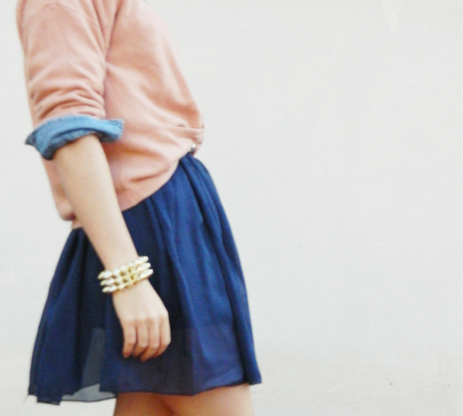 Igualmente, por fín tuve la oportunidad y saqué fotos hoy, el sol estaba medio raro y mi batería se agoto pero igual tengo algunas e hice un video que verán luego. Esta es una combinación de colores que me gusta mucho, rosa viejo y azul, en este caso creo que el jean y el azul actúan como neutros así que no es muy raro, me parece. Me encanta esta falda porque es femenina y éste tono de azul es uno de mis colores favoritos, una vez más, Solilor hizo un genial trabajo, simplemente me encanta.