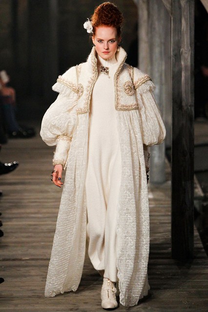 Alright so i told you i was going to quit with the runway fangirling, i know, i can’t really leave this one aside. I did the previous one with the obvious Marie Antoinette influence this time the whole Tudor’s court would’ve been amazed. I am indeed talking about CHANEL pre 2013 collection, that happened yesterday on the very same birthplace of Mary of Scots. Since i am a history freak, i can’t pass by the notorious renaissance influence on every single garment without leaving the classic Chanel style. Even though i felt the McQ vibe couple of times, the tweed, the tartan mixed with those argyle tights and the flat shoes were screaming Chanel. I don’t know what’s going on in Karl’s mind, maybe he’s been reading too much history books and thank god for that because this collection is flawless, i would wear every single piece if i could, hands down. Now, if you read my History of fashion: Baroque article, you’ll see it right away, on summer he pictured a modern Queen of France this time it was Elizabeth’s turn, maybe Victoria will be the next? or Josephine? I couldn’t be more excited to be honest. We still have the entire summer ahead but i am already inspired for winter! This collection is mind blowing and made me think of castles with brick walls, snowy hills and Gregorian sings in background, sitting in a deep green leather couch by the fire with a glass of scotch on the rocks.