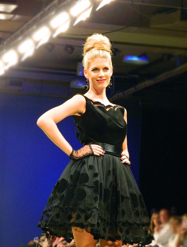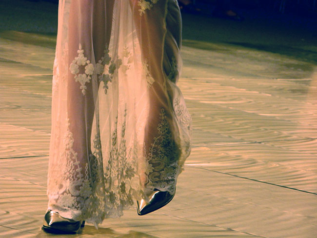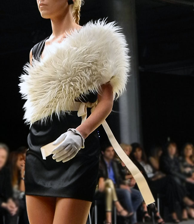 María Gorof mostró una colección a puro rock, con muchas transparencias, encajes y pieles. Prendas sexies y atrevidas con mucha actitud , apliques de tachas, cadenas y plumas , para mujeres audaces sin miedo a ir más allá.