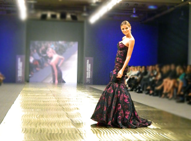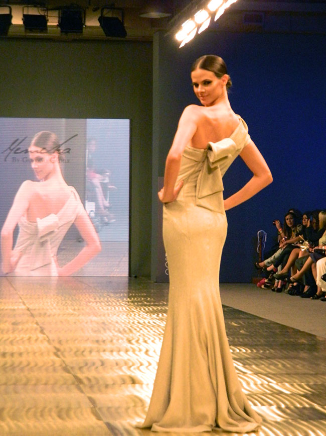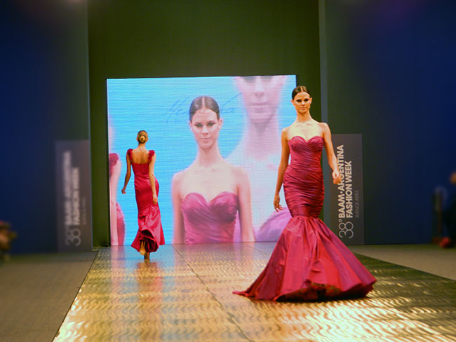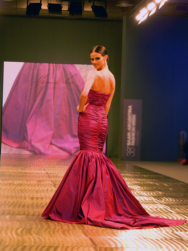 Gustavo Cadile llegó desde las pasarelas parisinas para presentar una colección exquisita. Pude hablar con él antes del esperado momento, apreciar las terminaciones de las prendas y los detalles de cerca. Se inspiró en Renoir y los parques de París, pensando en mujeres clásicas y elegantes, materiales que se adaptan al cuerpo y a las siluetas. El trabaja con clientas que buscan vestidos que encajen con sus personalidades, donde ellas lleven el vestido y no de otra forma.
