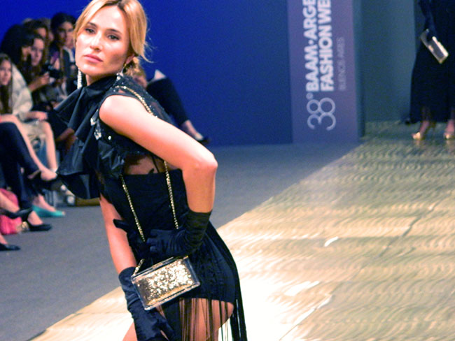Además del desfile de Laurencio Adot, en el tercer día del BAAM Carmen Steffens presentó una colección con brillos y transparencias donde los protagonistas en realidad eran los bolsos, sobres y carteras perfectas para salir a la noche cuando no queremos llevar tantas cosas.