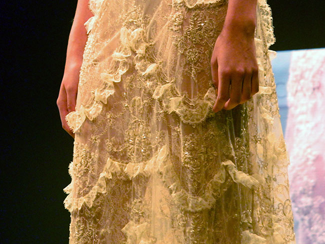 Junto a María Pryor , el sexto día del Buenos Aires Alta Moda estuvo presente también Pía Carregal. Otra amante de los encajes y bordados. Las telas eran preciosas, cási que flotaban junto con las modelos, vestidos en colores claros en su mayoría y otros toques de colores vibrantes y femeninos. Los detalles hicieron estos trajes perfectos, suaves, clásicos y atemporales. Demostrando que aun ciertos cortes con varios siglos de antiguedad pueden ser usados hoy con una vuelta de tuerca moderna y fresca.