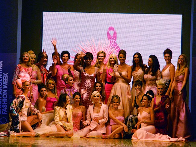 El último desfile de la noche fue el de FUCA, asociación encargada de concientizar a las mujeres en la lucha contra el cancer de mama. Justamente por eso todos los vestidos presentados fueron de color rosa. Cada diseñador estuvo a cargo de vestir a una celebridad del país para ayudar a la causa.