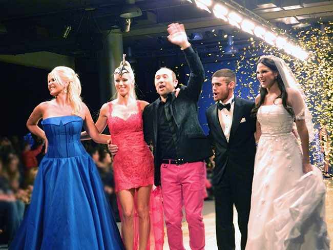Cúando el público se dispersó para esperar al otro desfile, comenzaron las preparaciones detras de escena de Claudio cosano, dirigiendo a las modelos en lo que era casi una coreografía. Como era de esperarse, la priméra fila estaba repleta de sus clientas más famosas que posaban para los flashes con sus mejores sonrisas. El defile comenzó con una música digna de un sábado a la noche, modelos reconocidas como nicole neuman y personajes de la tele fueron partícipes del show. Cabellos largos y lacios en colas de caballo que bailaban a cada paso. Los vestidos eran dignos de una alfombra roja, nada menos. No se puede explicar mucho porque las imágenes hablan solas. Todo esto terminó con Claudio Cosano sonriente y una lluvia de papelitos dorados, música a todo volumen y la gente enloquesida tratando de tener una foto del momento. Los ruidos de las cámaras se mezclaron con la música y así dieron por finalizado una vez más, el Buenos Aires Alta Moda.