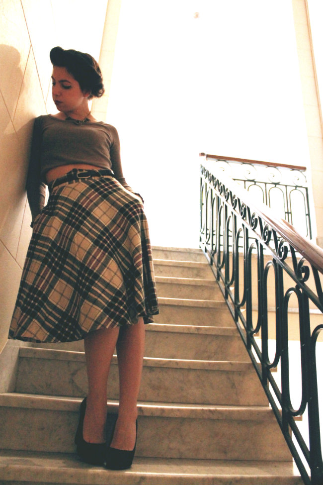 Estuve buscando la excusa perfecta para usar esta falda desde hace mucho tiempo, mi mamá me la dio años atrás y no podía encontrar la manera correcta de usarla, hasta ahora. Las faldas de este largo son chic, eternas y tienen ese sabor de antiguo glamour. Los zapatos altos negros son sus mejores amigos y este pseudo crop top le da el toque moderno. Labios oscuros y un peinado vintage son el cierre perfecto para el conjunto. Agregale una camera de cuero para un look edgy o un tapado con cinturón para ser una de las mujeres de la pre-guerra, me gustan las dos opciones para serles franca. Como siempre les digo, un día puedo salir pareciendo del cast de Clueless y al otro día estar lista para tomar el té con Ava Gardner. Hoy es uno de esos días.