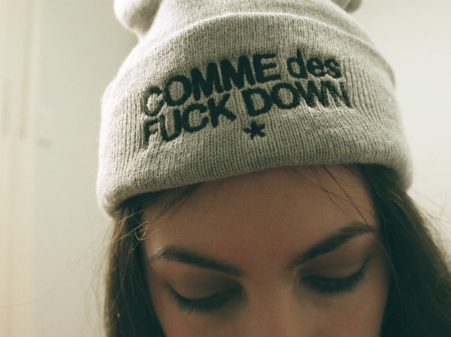 Desde que le vi la remera a una de mis bloggers y modelo favorita de Comme des Fuck down, mueeeeero por una prenda con la misma estampa. Ese beanie es bellísimo!Me gusta mucho la combinación tiro alto + crop top!Besos♥