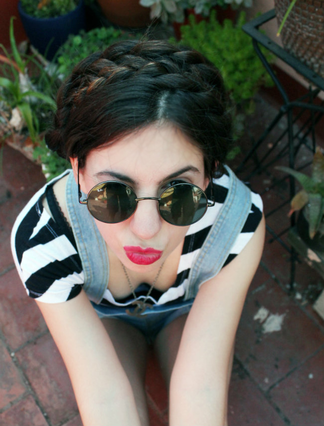 Me gustó la propuesta – la foto que te sacaste desde arribas pareces lady gaga jajaj – pusiste onda al look con el styling del pelo + roundsunglasses. besos Dia.www.diawho.com