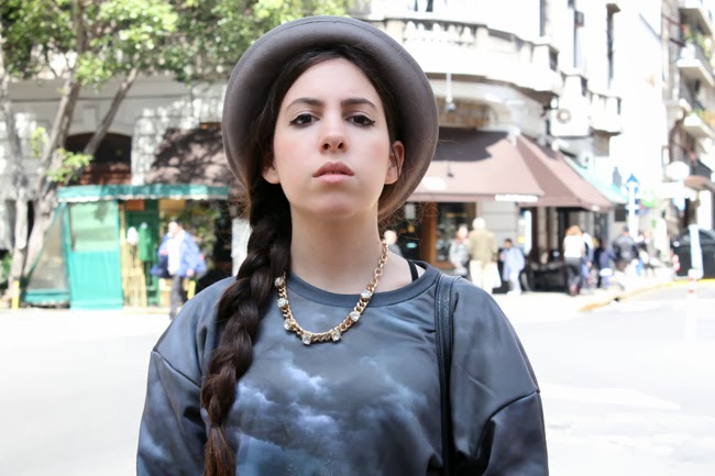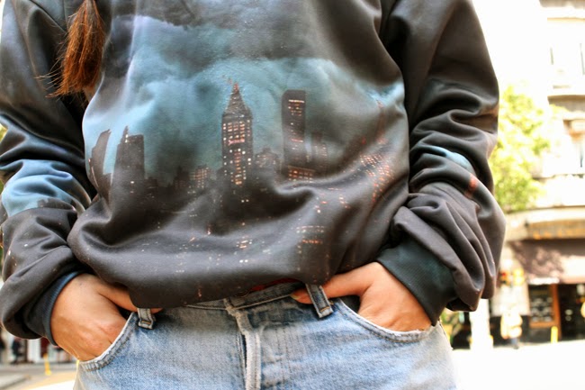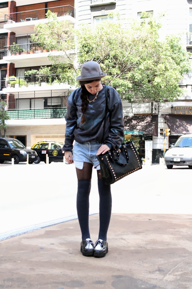 Dejando el enojo de lado, el martes fuimos a un evento para ver la nueva colección de Paez, otras bloggers y yo fuimos a desayunar y luego paseamos por la ciudad. Esto fue lo que usé. El buzo es de una marca polaca que se llama Mr Gugu, ni bien me llegó lo usé para la facultad pero esta vez quería ir un poco mas grungy pero con una vuelta agregándole el dorado del collar y la cartera que creo que combinan con las luces en el estampado, no creen?