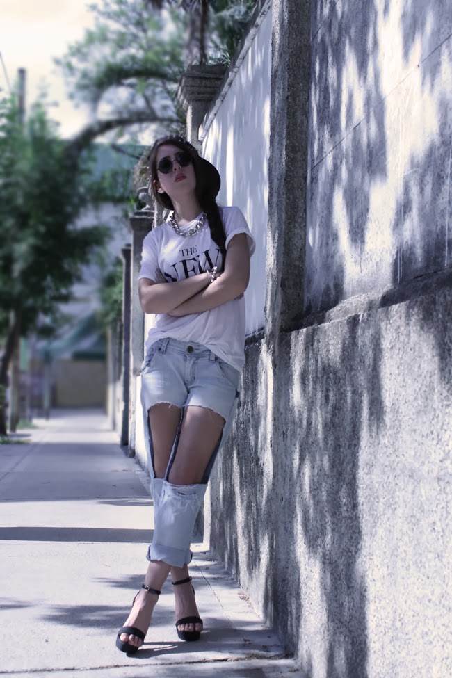 Todos tenemos esos días en los que nos paramos delante de nuestro armario, sin idea de nada y pensando “no tengo nada que ponerme”, pero por lo menos en mi caso, literalmente no tengo más espacio para guardar nada más. Lo que en realidad queremos decir es “no tengo nada que represente mi animo del momento” . Podes probarte diez conjuntos distintos pero siempre vas a volver al viejo dúo del jean y la remera . Pero aún en esas piezas básicas que todas tenemos, algo así como las salvadoras que una puede llamar en casos de necesidad, los fundamentos del armario, aún esas piezas aburridas pueden quedar mil veces mejor si sabemos como. En lugar de una remera lisa, busquemos una con alguna estampa o logo bonito, los jeans rotos tienen más onda que los sanitos y siempre hay que agregar accesorios que definan el tono del conjunto. En este caso optaba por algo tipo urbano-chic por lo que combiné joyería plateada con el sombrero y estas sandalias minimalistas de Jessica Buurman.