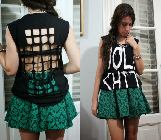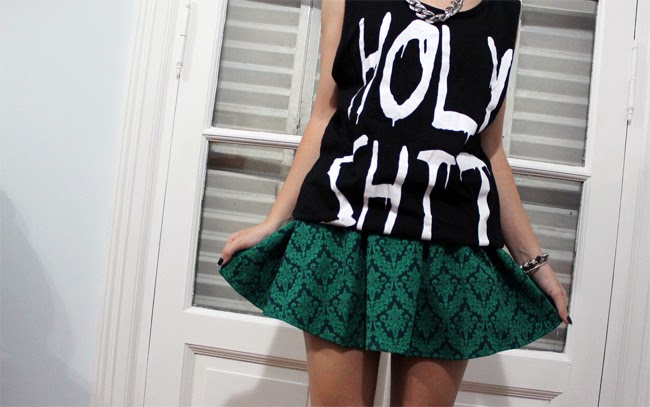 Un post rápido, saqué estas fotos antes de salir a la noche el otro día entonces no tuve mucho tiempo pero como me gustaba lo que tenía puesto no me resistí. Estoy enamorada de esta falda, la tela y el color resumen mi sentido de la moda. Es una falda bastante elegante así que quise bajarla un poco con esta musculosa negra y accesorios más casuales. Claramente no soy la unica que amó la falda porque Flor tiene la misma y me di cuenta en cuando estaba esperandola en el correo, y aunque tenemos estilos distintos, nos gustó la misma cosa! Miren el blog de Flor para otra opcion de como usar la misma falda, misma paleta de colores pero con un tono distinto!