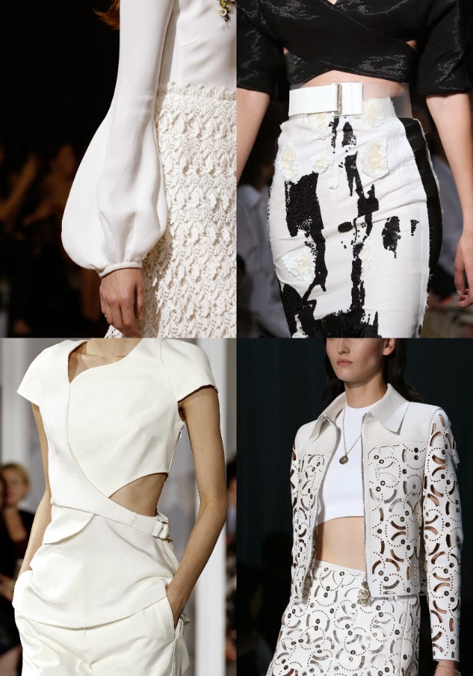 My personal picks for the season still are black and white. Laser cut outs, lace details and embroiders dressed up the runways from New York to Paris. If we are talking about shapes there was a battle between flowy and boho-ish dresses versus fitted and structured garments.