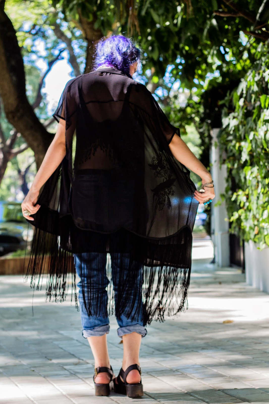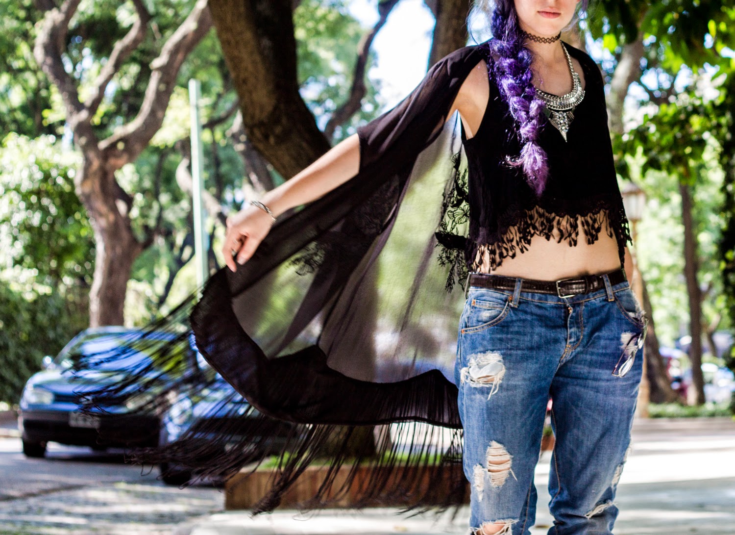 Últimamente me estuve adentrando en el estilo conocido como boho-chic, me encantan los detalles en encajes, la joyería plateada, el pelo despeinado y la vibra hippie así que no se sorprendan si lo adopto este verano. Encontré este top mientras hacía las compras de navidad y me enamoré, la espalda es mi parte favorita. Lo usé con boyfriend jeans para mantener el aura casual y despreocupada. Usé las flatforms que mi mamá me regaló y amo porque son increíblemente cómodas pero chis y muy fáciles de usar, una cartera balde y lentes de corazón. Tambien le agregué un kimono semi transparente para darle un poco más de detalle y dimensión al conjunto. Se pueden cambiar los zapatos bajos por unas sandalias de taco, la cartera por un clutch bordado y a lo mejor un accesorio en la cabeza para transformar lo casual en algo super chic ideal para salir a la noche.