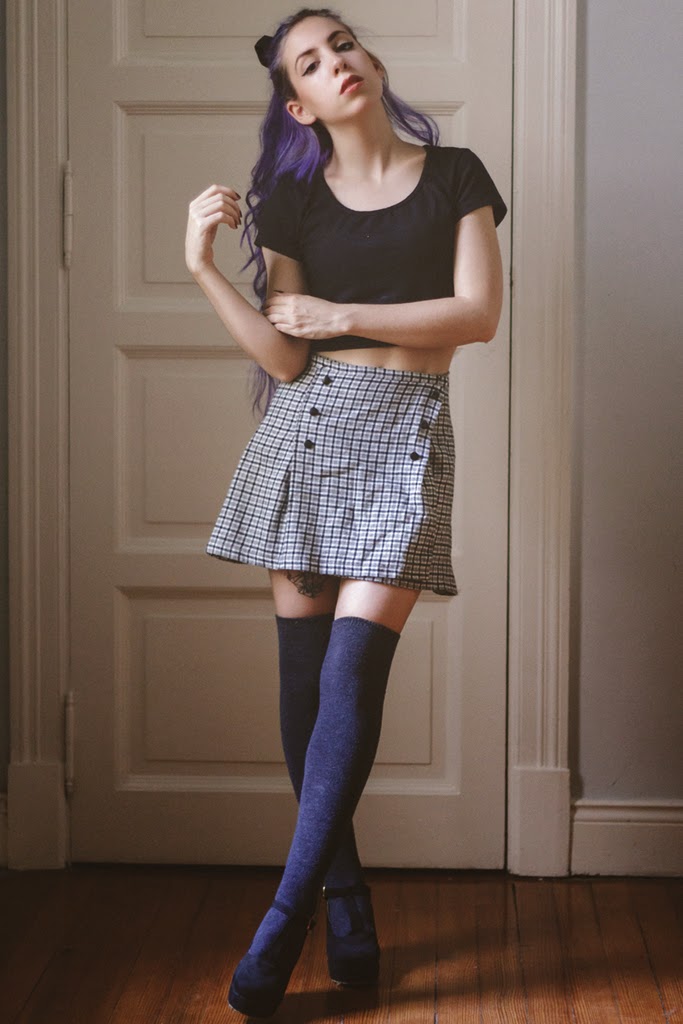 por favor, la última foto! hermosísima. Me encanta el detalle (no sé si intencional o no jaja) de las uñas que combinan con el collar del gato… las cosas en las que me fijo. Me encantan las medias, dónde podré conseguirlas ahora?
