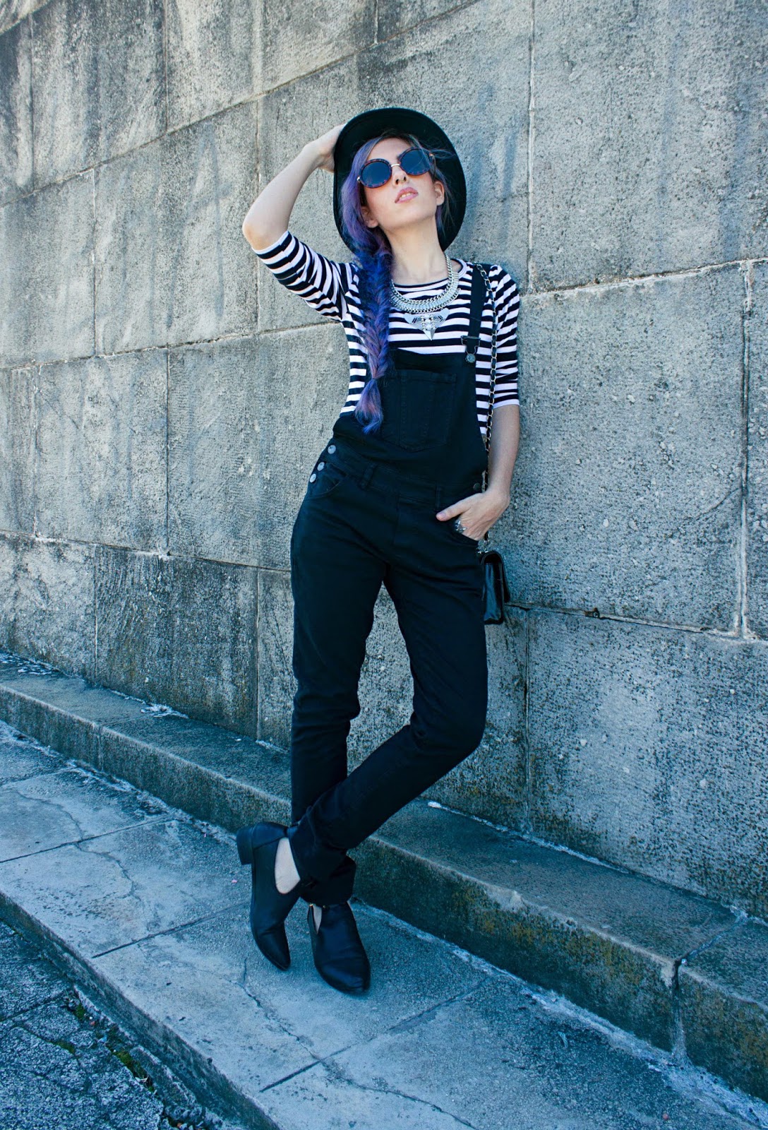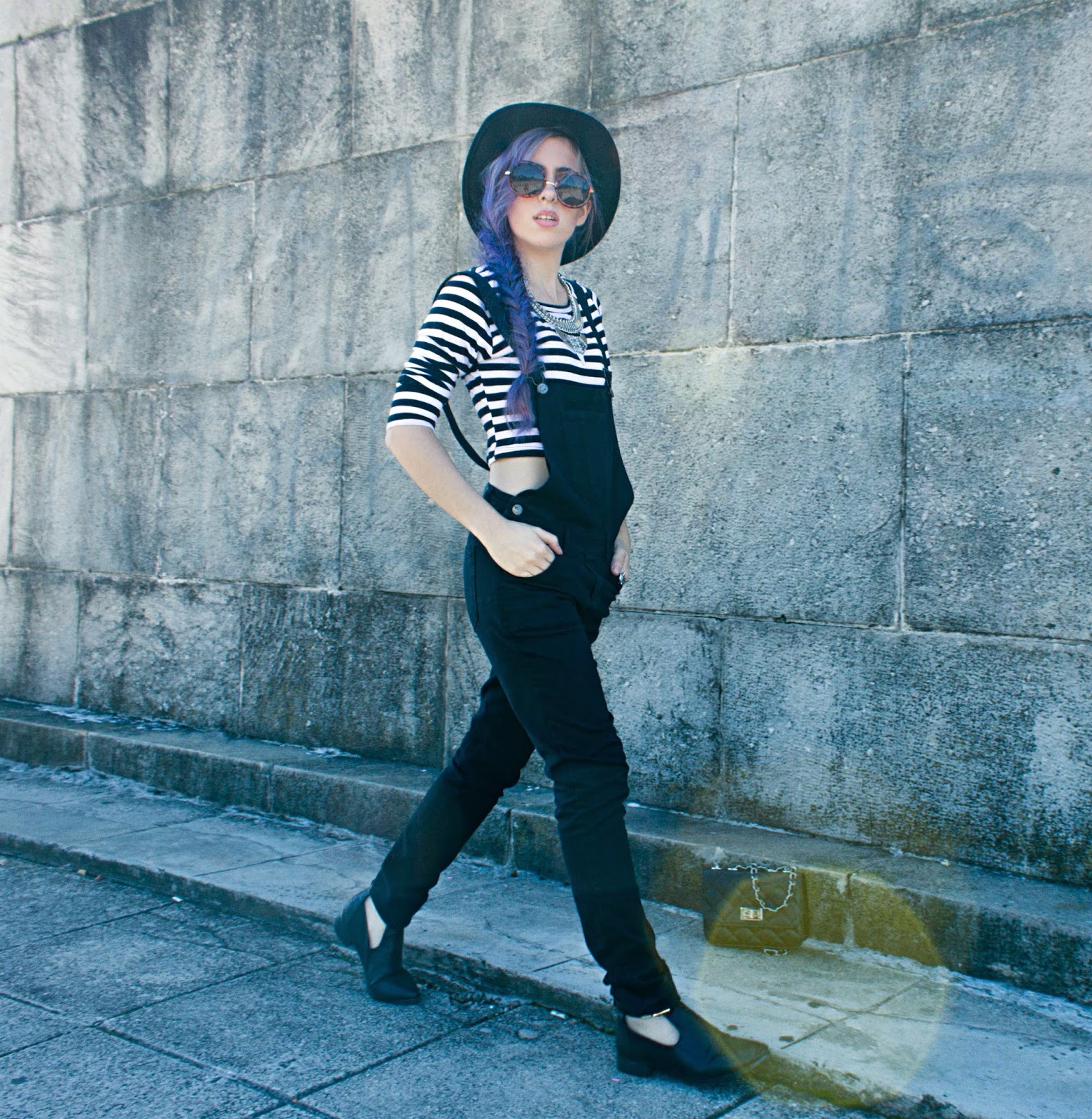 Me tomo el subte seguido y eso significa window shopping cada vez que voy de camino a él. Por al menos tres semanas, veía un par de overalls (o un enterito como le dicen acá) en la vidriera de un local sin poder decidir si comprarlos o no, pero sin embargo me quedaba pensando en todas las formas que tenía de usarlos. Hasta que un día fui y me los llevé para usarlos en el primer BAIFFF. No estaba segura si comprarlos o no porque ya tengo dos pares pero como ambos son de jean, decidí darles una oportunidad. Son livianos y cómodos de usar y muy faciles de combinar (al menos en mi opinión) . Para la primera vez decidí usarlos con un crop top rayado, mi amado fedora y unos flats en punta muy chic para alargar la pierna. Me inspiré en varios looks de Alexa Chung con unos parecidos. Me veía como un granjero salido de alguna película de Tim Burton pero es no es un problema para mi.