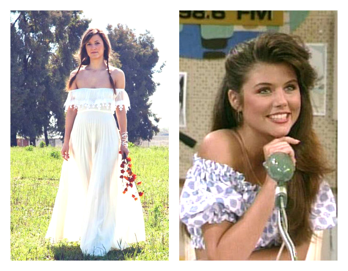 Sin duda el llamado escote-off the shoulder esta siendo increíblemente popular, tanto en tops con aires boho con puntillas y volados al mejor estilo campesina como ajustados al cuerpo y cortos para las fanáticas de SavedByThe Bell. Se sigue viendo en los armarios de todas las itgirls del momento sin importar cual sea su estilo.