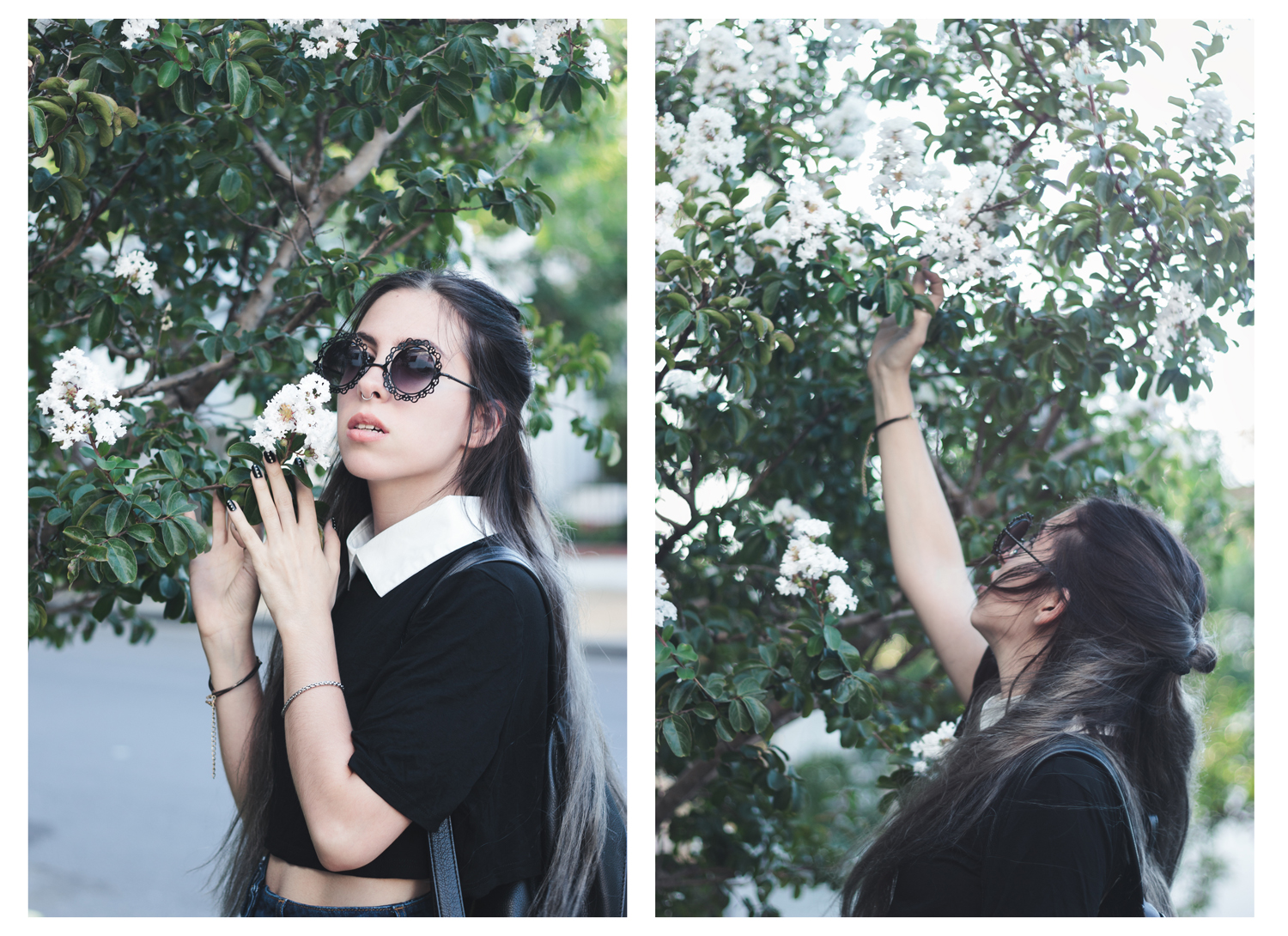 I don’t know if you remember this post from last year where i talked about how obsessed i was with buttoned skirts. After a while of hunting i got one and i believe this is the first time i am showing it to you. I paired it with a collared crop top from YOINS that i got in the mail few weeks ago. As always, details are super important, they take the outfit to the next level. I wore these awesome sunnies from GoldSoul and i kept the monochrome style with black shoes and cute ankle socks. The end result is kind of a Cher Horowitz meets Wednesday Addams, i love it.