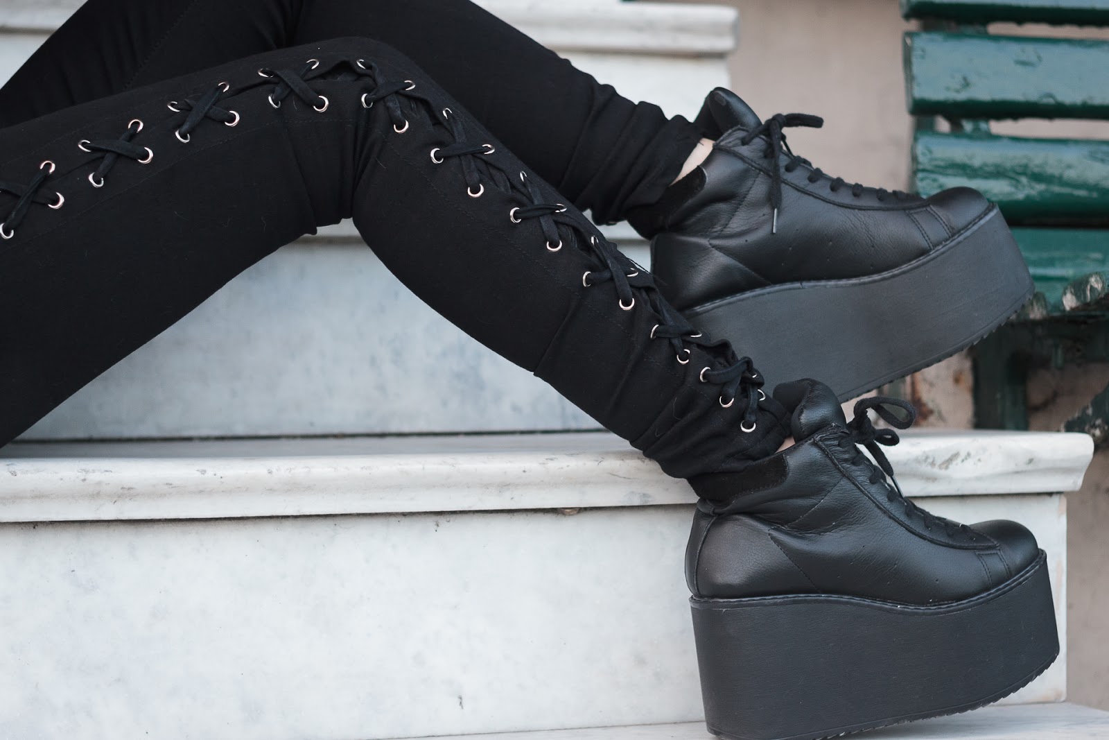 As soon as the temperature goes down a bit, i want to bring out my entire winter closet. I’ve been wanting to wear my denim jacket again since forever and i finally got the chance at BafWeek. The same day i spent a very long time trying to find these pants (that are imo the best thing in my closet at the moment) . I could not find them anywhere but i bought the last pair at a random shop in a shady gallery. I paired them with a gray top i really like, those platform sneakers i love even if everyone hates and the hat that adds a very interesting texture to the outfit.