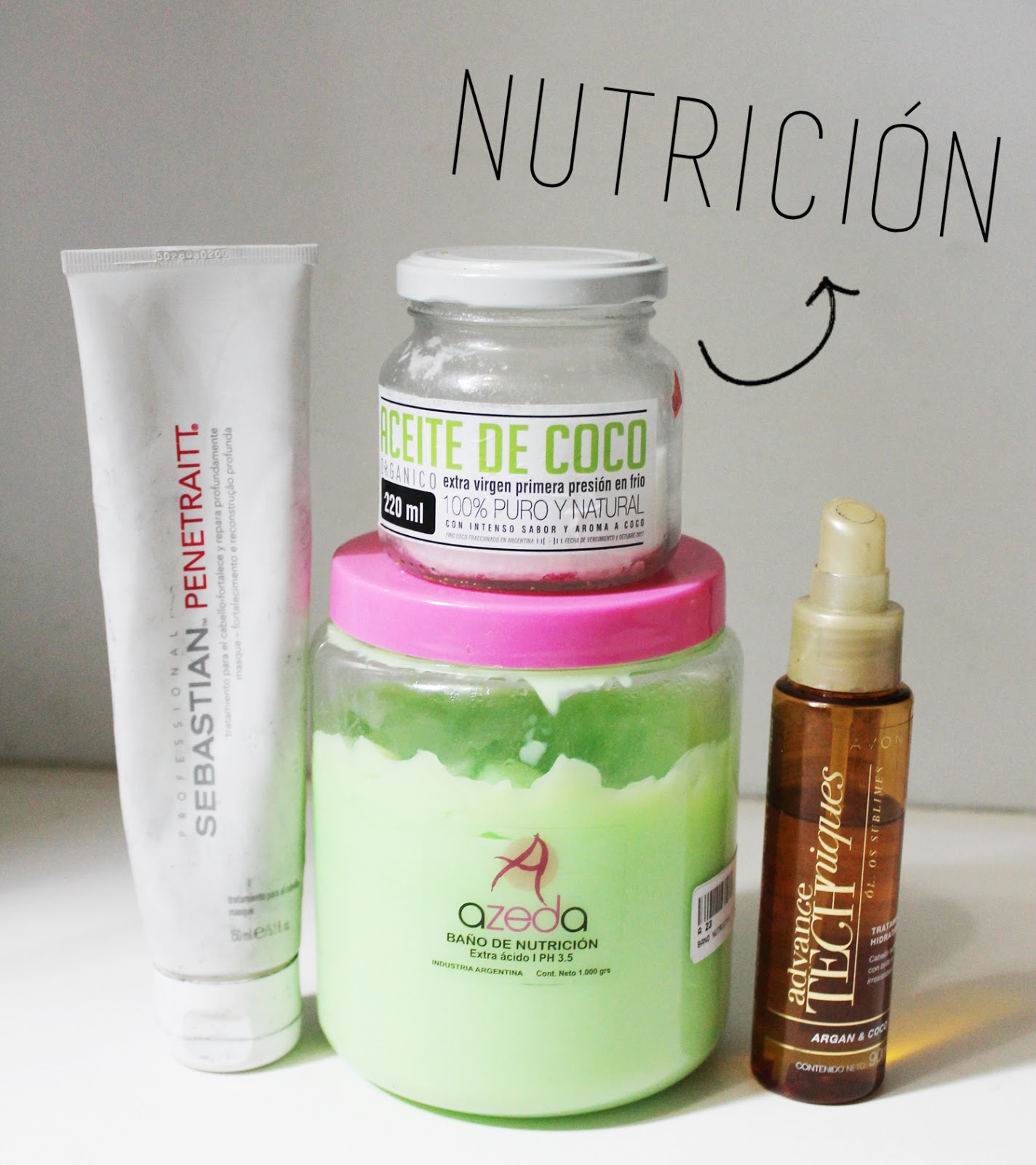 - Aceite de coco: una vez cada 15 días me aplico aceite de coco y lo dejo actuar toda la noche. La proteina del aceite penetra en los poros del cabello y ayuda a repararlo además de que lo nutre intensamente y tiene un olor riquísimo.