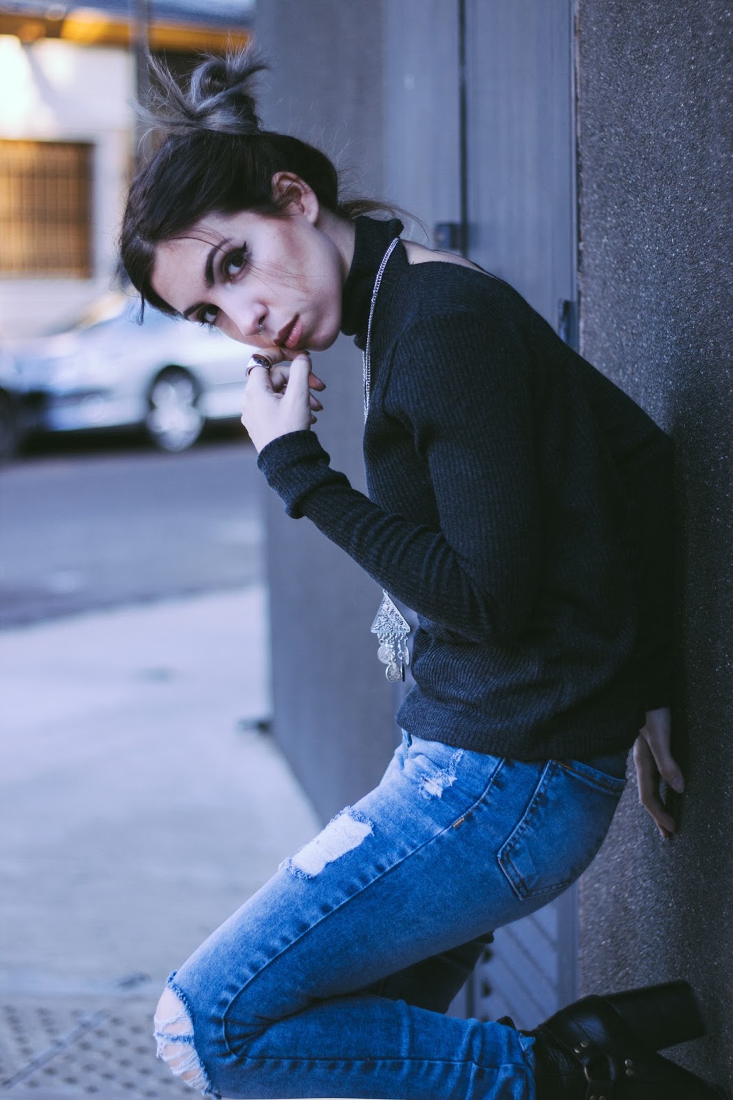 Esta polera puede parecer simple por delante pero tiene toda la espalda descubierta, lo que la hace especial! Puede que no sea lo más adecuado para estas nuevas temperaturas pero me parece genial para salir a la noche a algún bar con calefacción, obviamente. Lo usamos con estos jeans que siguen la misma lógica, las roturas y los parches –tendencia muy in para esta temporada– lo elevan un poco. En resumen es un look simple pero con detalles inesperados ideal para situaciones informales pero en las que igualmente queres verte arreglada.