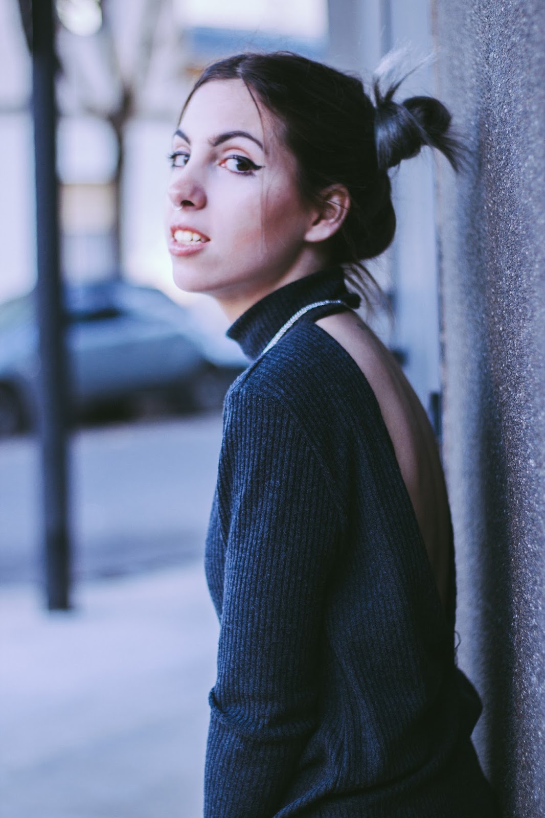 amo los cuchuflos y esa polera. Me parece genial llegar a un lugar con tapado y flash! te lo sacas y tenes esa espalda super sexy
