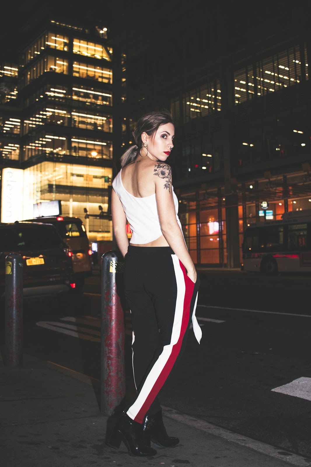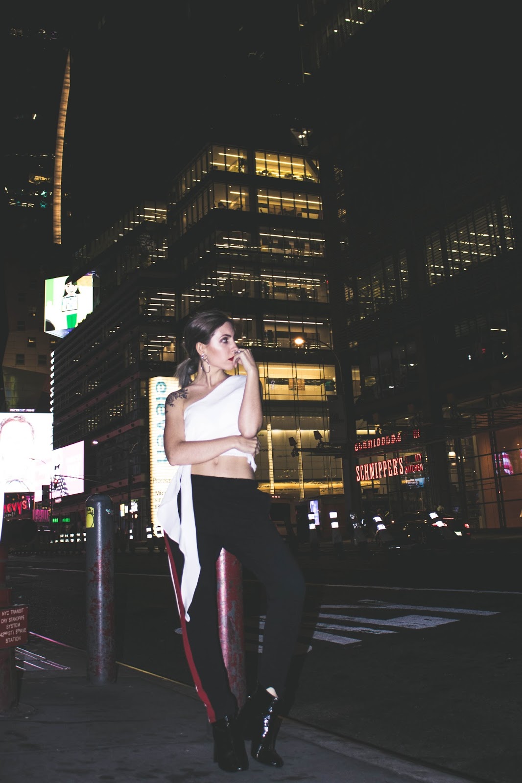 Las fotos las hicimos en Midtown con Flor y Tom luego del desfile y me encanta como quedaron, como les dije en el look anterior, no suelo hacer fotos de noche porque nunca tengo la cámara conmigo y en el celular no se aprecia así que fue lindo para variar un poco.