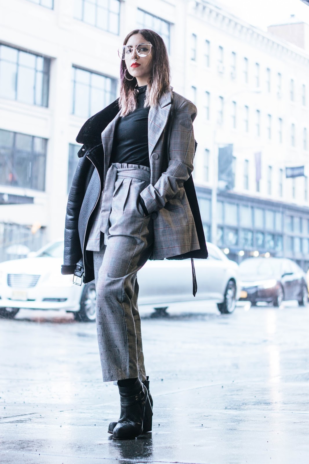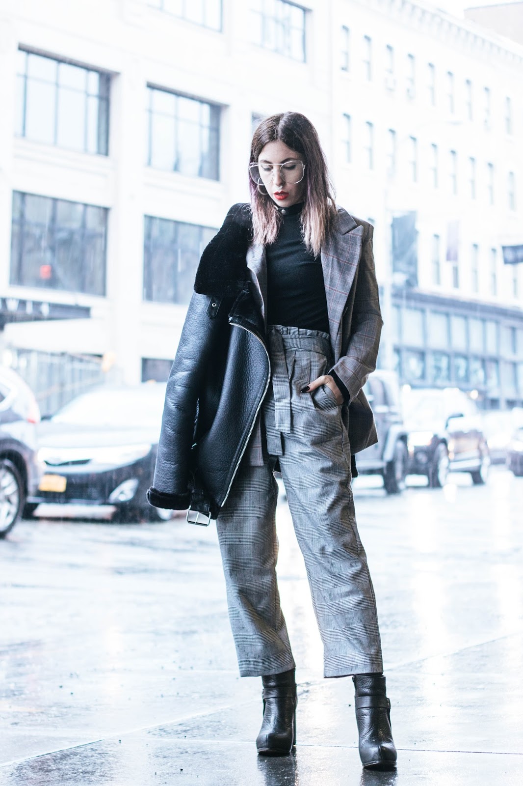 El pantalón se llama “paper bag” justamente por el efecto que hace en la parte superior y no se si lo amo lo odio viendo estas fotos. Lo combiné con un blazer del mismo estampado y como hacía mucho frió esta campera de Zara que es mi nueva favorita.