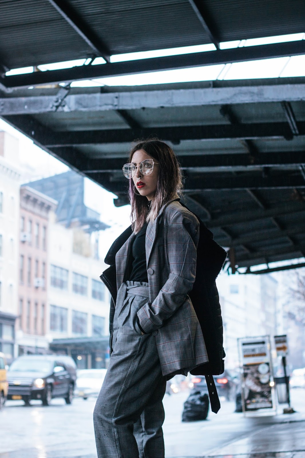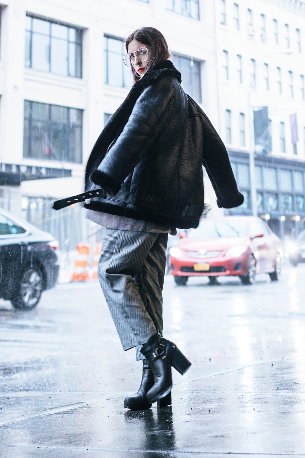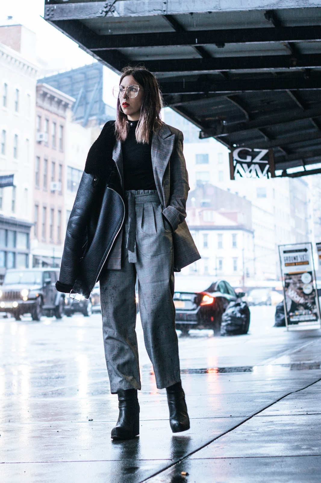 Primero que nada vamos a ignorar mi pelo mojado y horrible. Ese día tuvimos un desfile por ahí cerca y cuando salimos se largó un diluvio del que fue imposible zafar. Decidí no mostrarles nada de ese show porque luego de un poco de investigación descubrimos que el diseñador usaba pieles reales y no tengo ningún interés en promocionar eso.