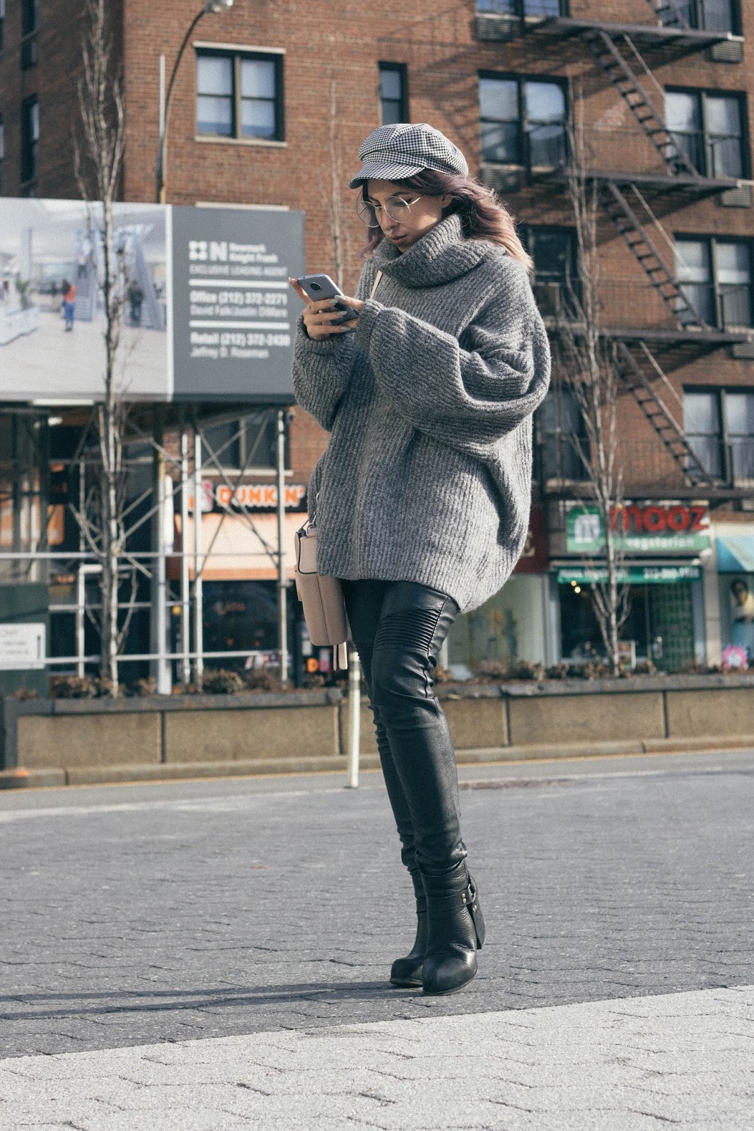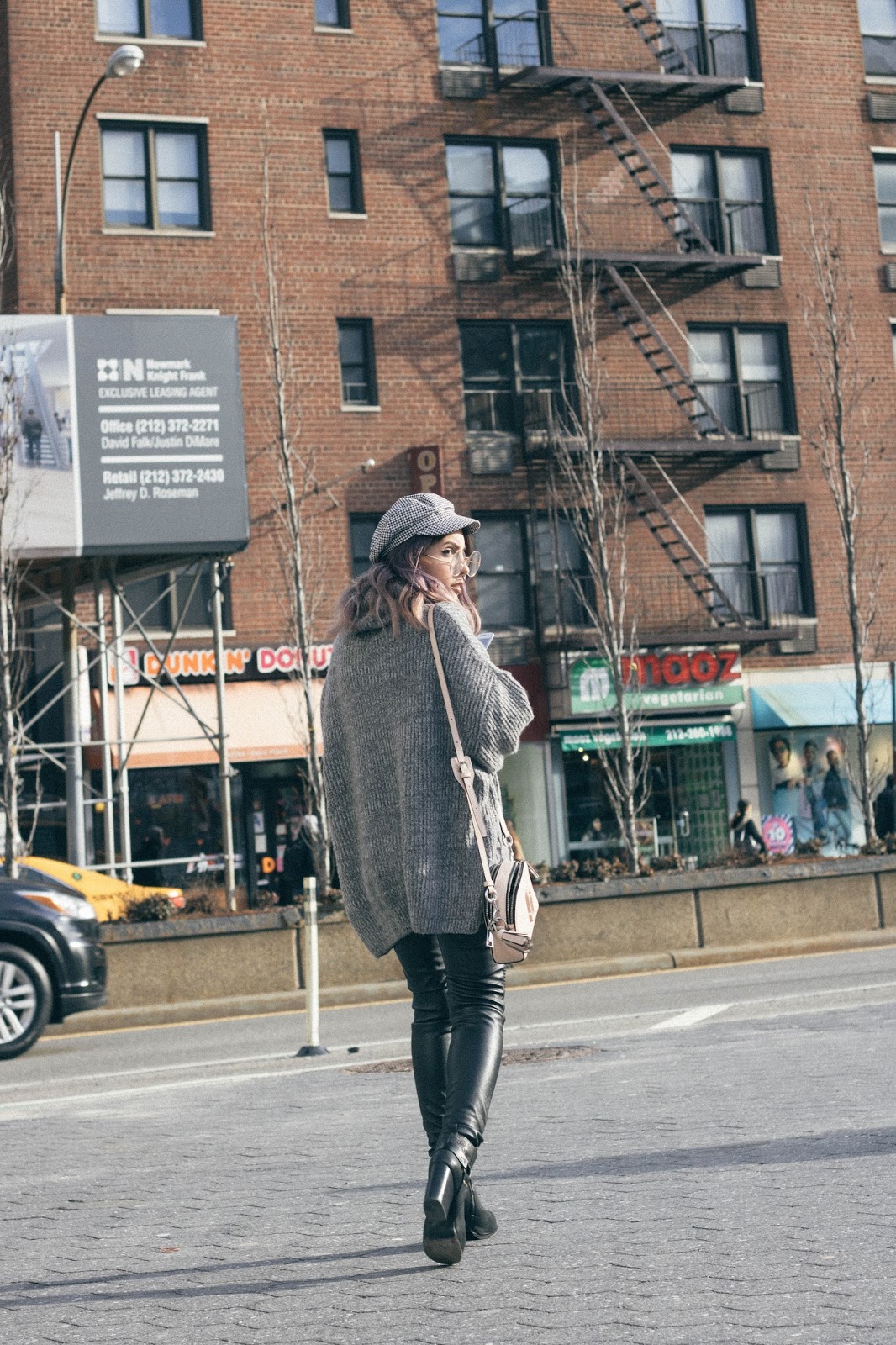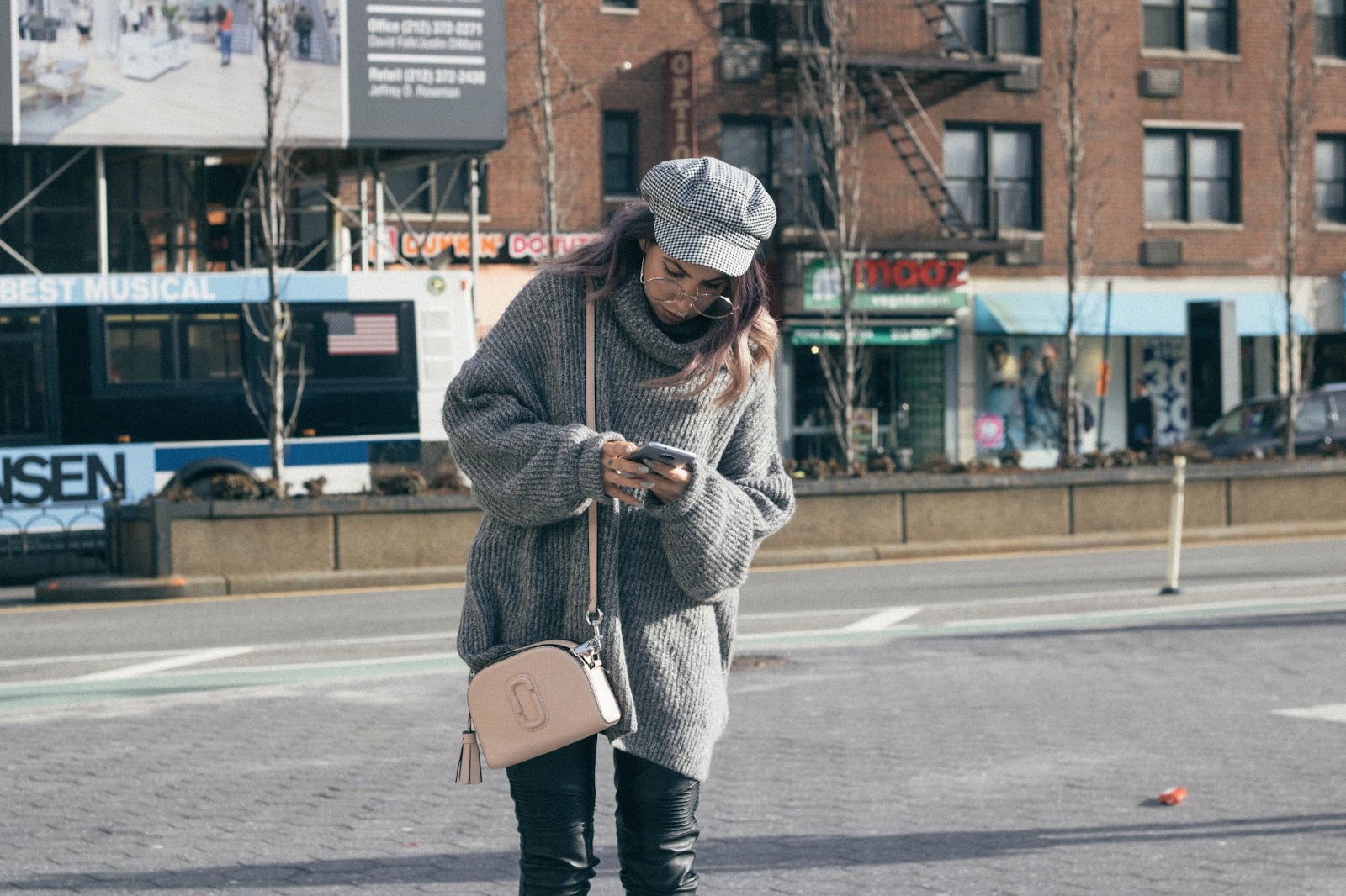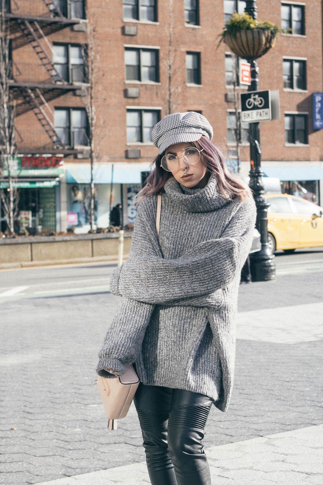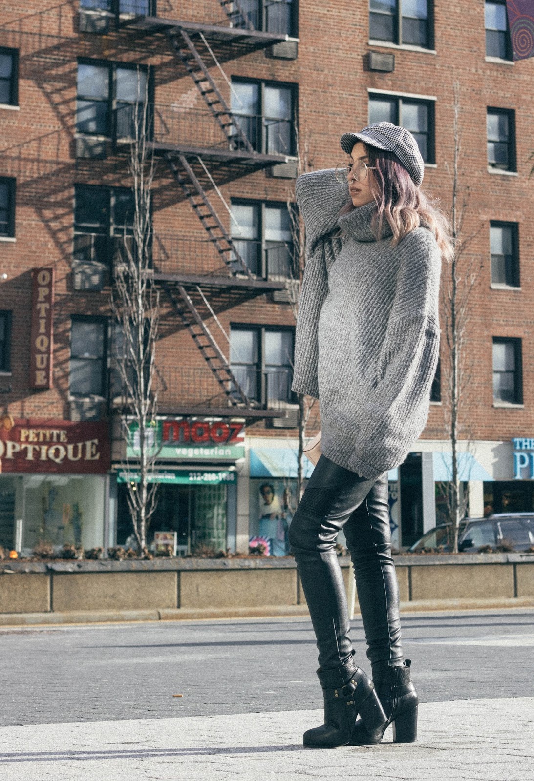 Este fue uno de mis looks favoritos de todos los que usé en Fashion Week en febrero. Cuando vi este sweater enorme en Zara me enamoré y me imaginé mil y un formas de usarlo. Esta vez elegí combinarlo con pantalones biker negros, un baker boy hat en blanco y negro, botas y mi MJ nude que amo. Creo que lo que más me gustó fueron los lentes redondos que venía queriendo desde hace mucho tiempo y por fin pude conseguir en Forever 21. Se me hace re coreano todo el look por alguna razón, ¿no les parece?