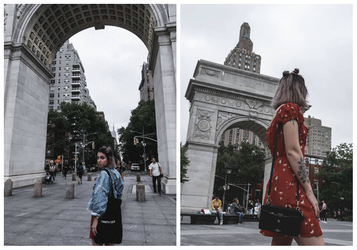 Hay muchos lugares para hacer fotos en Nueva York y varios de esos son parques. Uno de mis parques favoritos es Washington Sq Park en la 5ta y Waverly place. Está cerca de la NYU así que es un parque muy concurrido por universitarios y está lleno de arte, gente paseando perritos o vendiendo libros. El arco es una mini réplica del de Paris y la combinación con los árboles, la fuente y los ladrillos es hermosa.