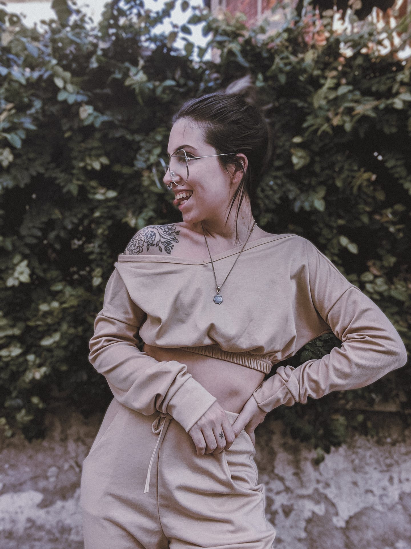 El lounge wear en pocas palabras es la ropa que te ponés para estar en tu casa o cómoda, algo que a todo el mundo le gusta porque te permite no sentirte limitada con lo que podés o no hacer con la ropa pero sin comprometer el estilo. Osea, se puede tener onda e igualmente usar algo que se sienta como un pijama. Re en esa. Una de las cosas que elegí fue este lounge wear set en un color café con leche que consta de un jogger/babucha y un crop top. Nota: la modelo del sitio es muy voluptuosa y obvio que no me queda igual pero sin embargo me copa el fit